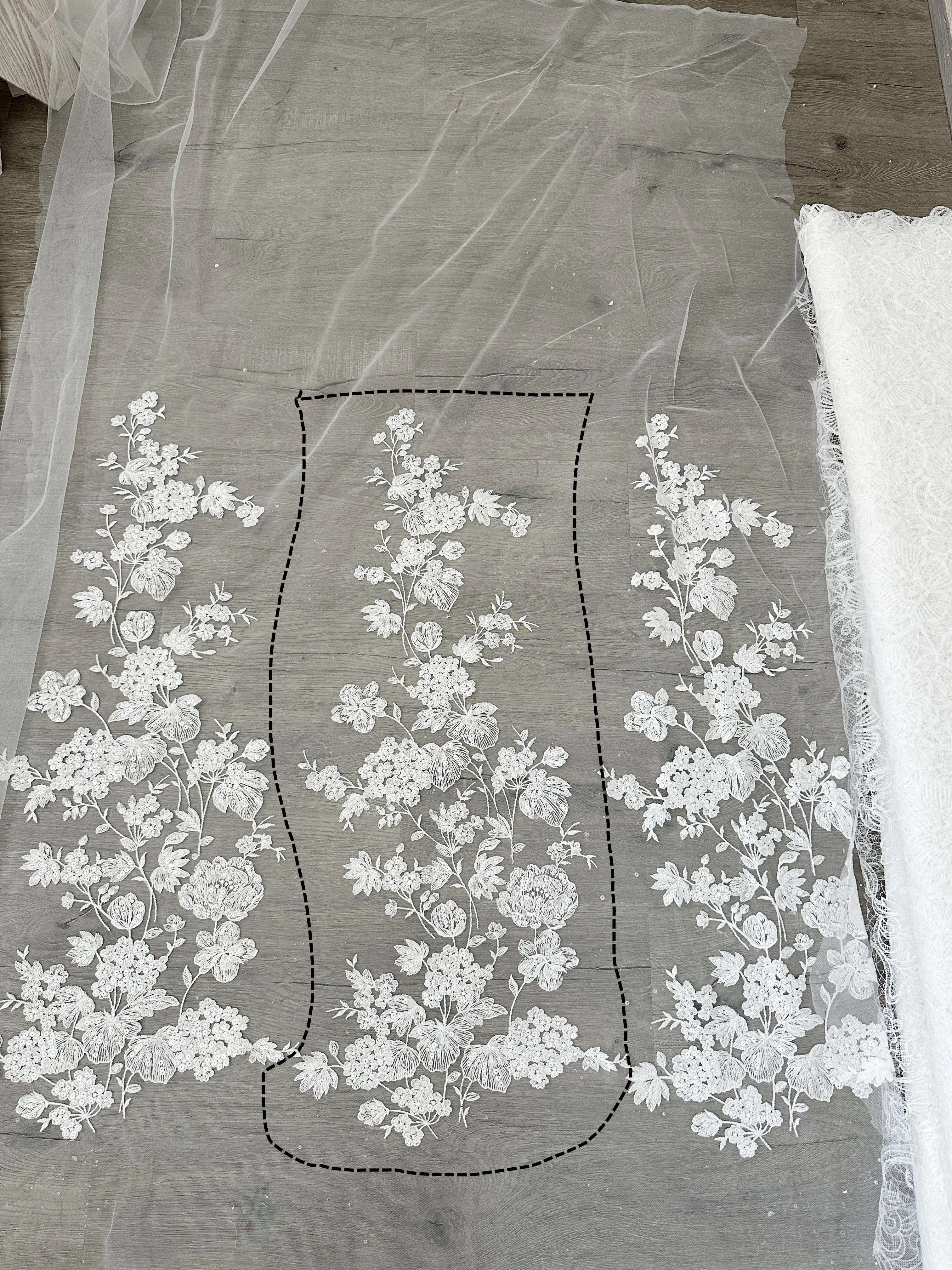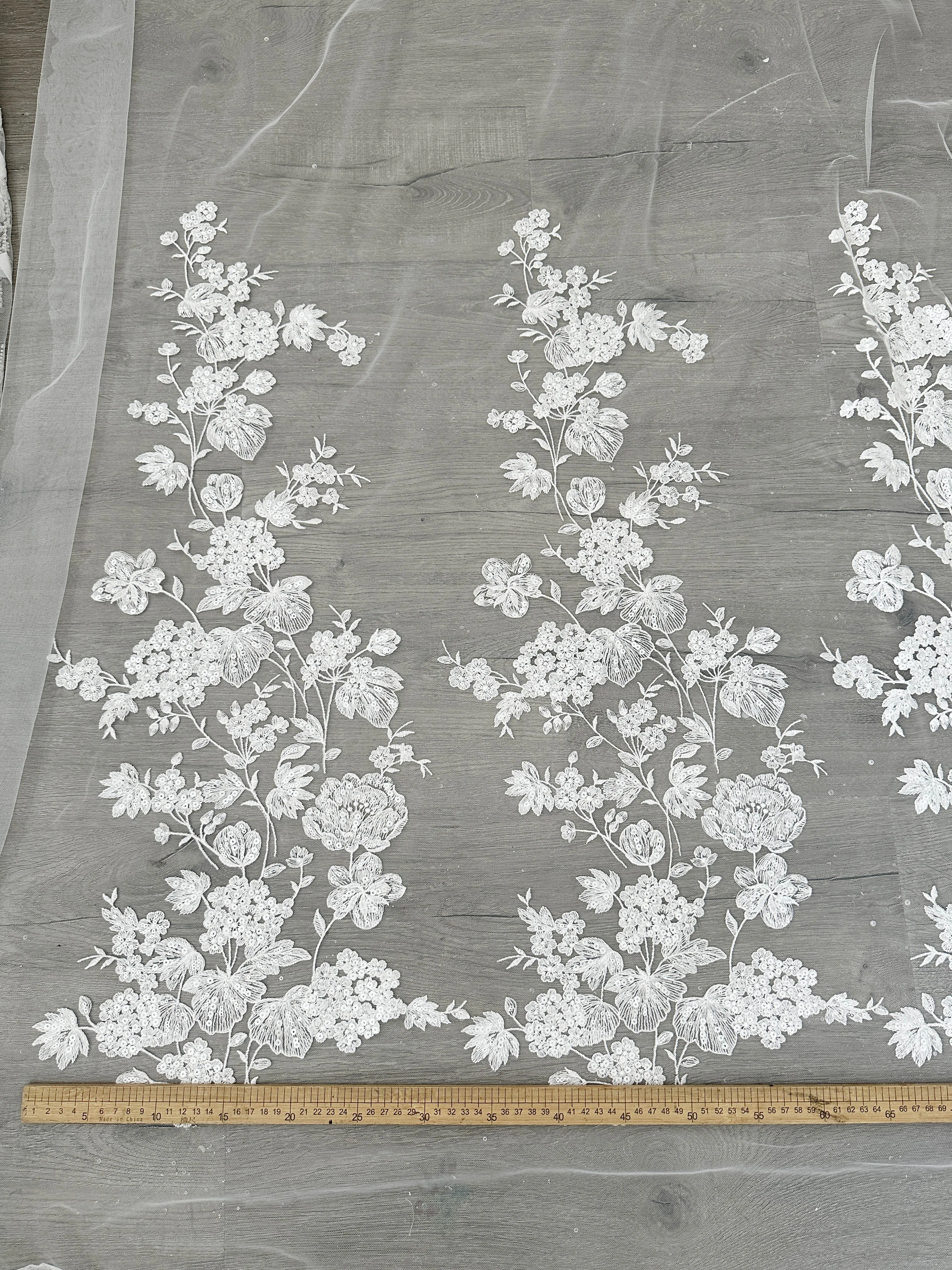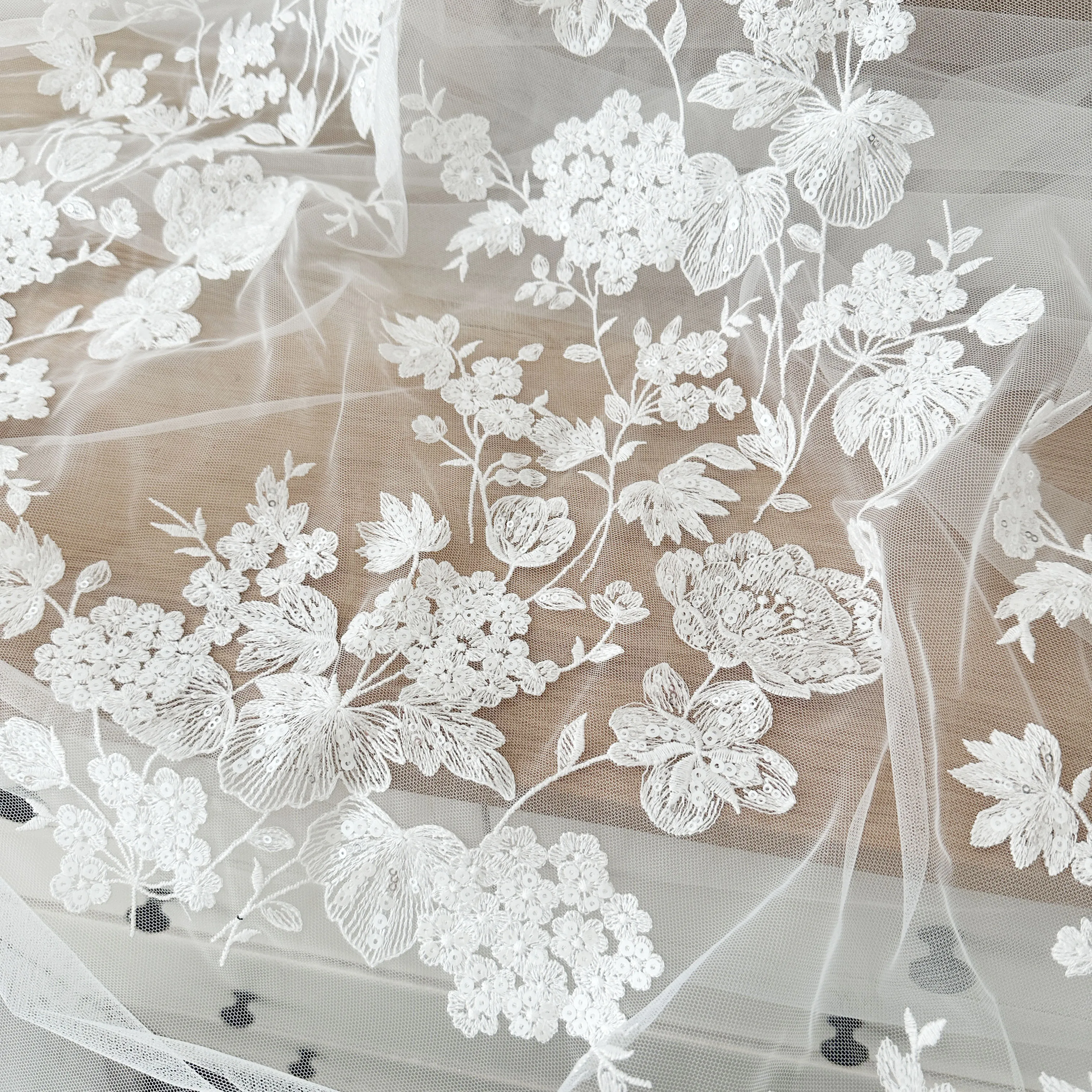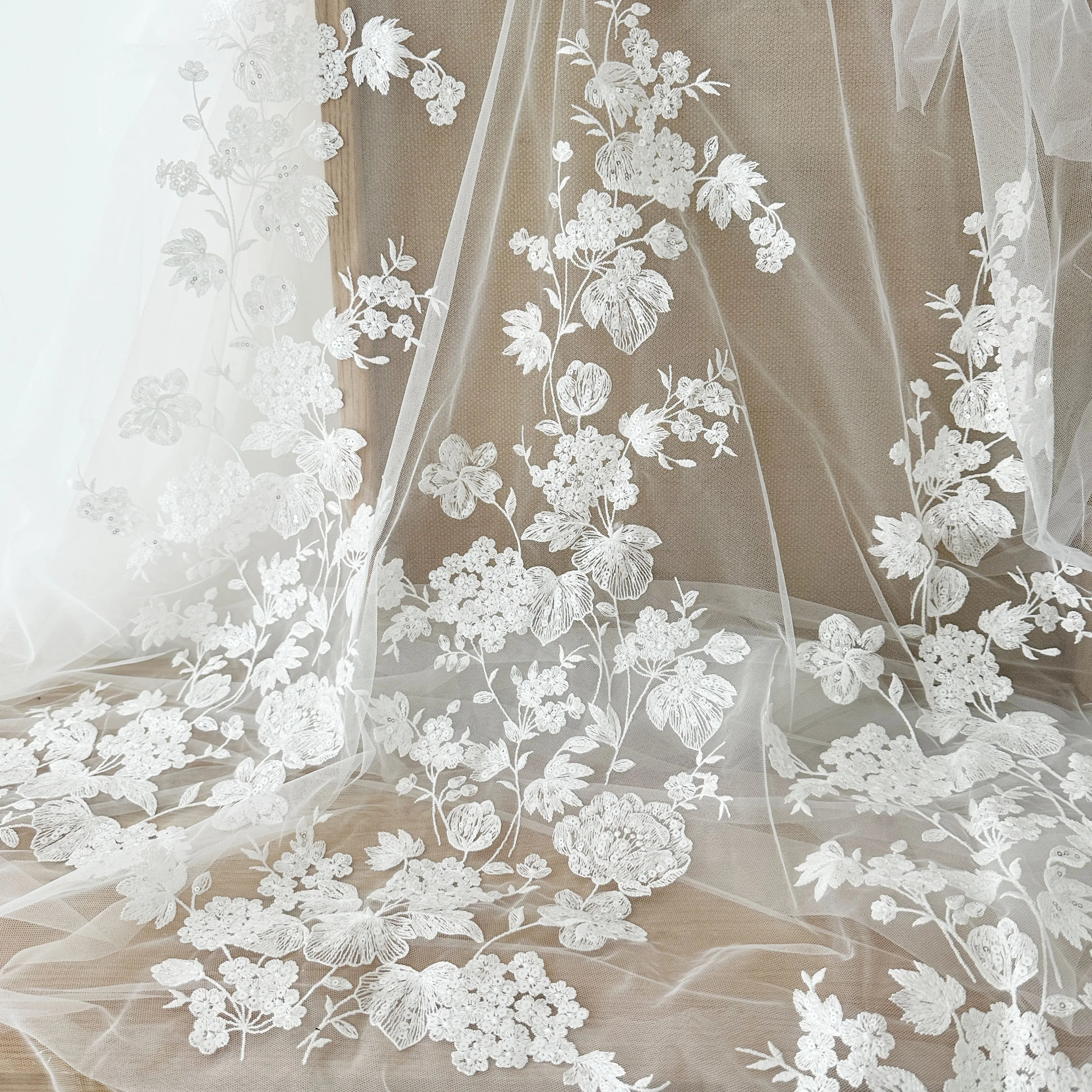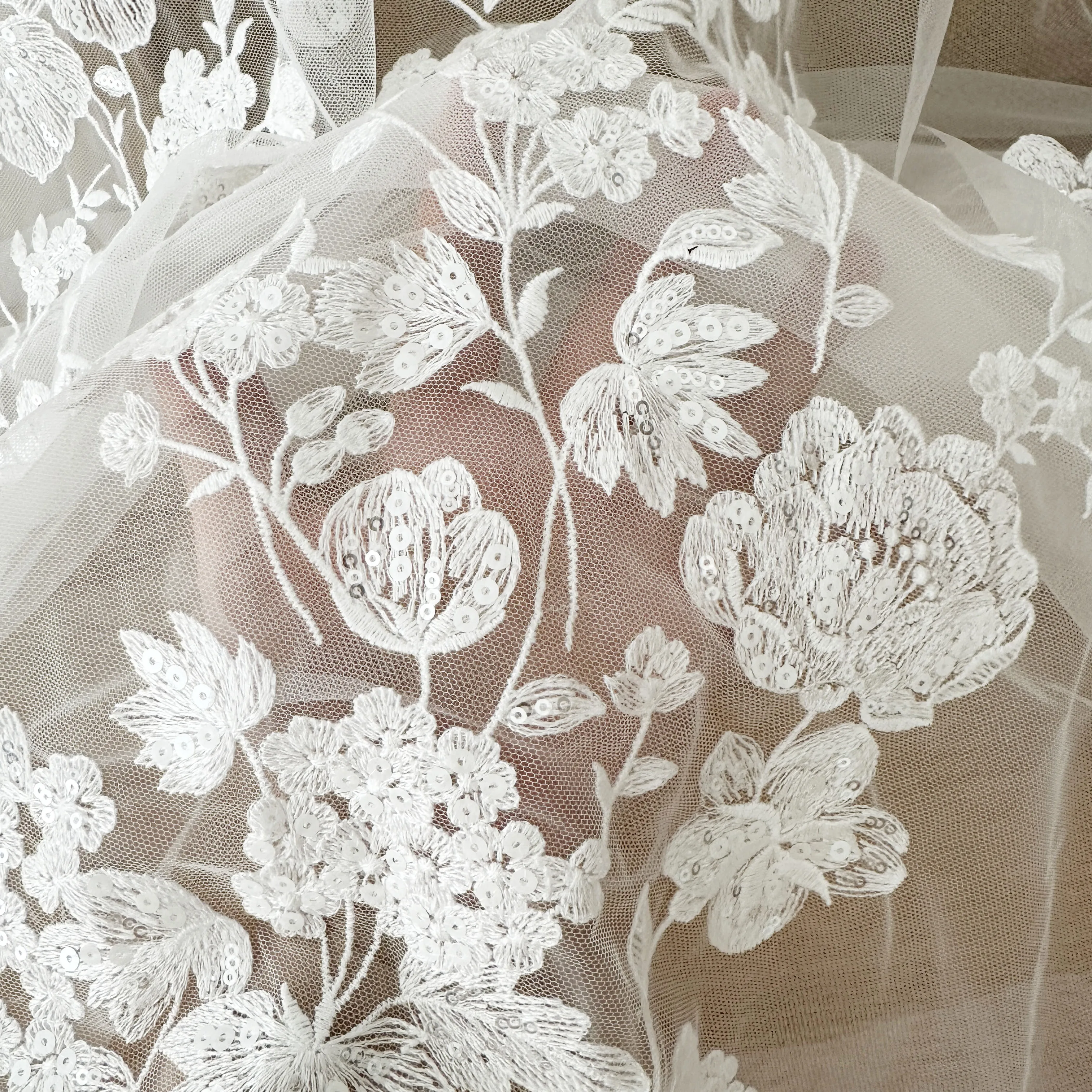 قماش دانتيل مطرز بخيوط قطنية من الترتر البيج مخصص، إكسسوارات دانتيل شبكية، فستان حجاب زفاف، اصنعها بنفسك