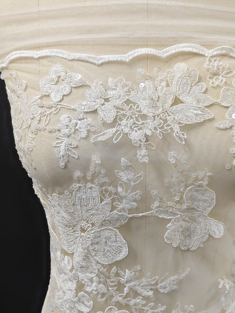 قماش فاخر رائع يتميز بتطريز الترتر اللامع على الدانتيل الرقيق.