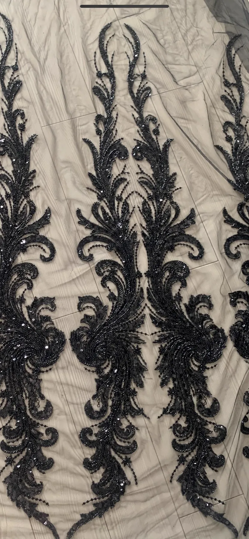 تطريز خرزي فاخر باللونين الأسود والفضي.