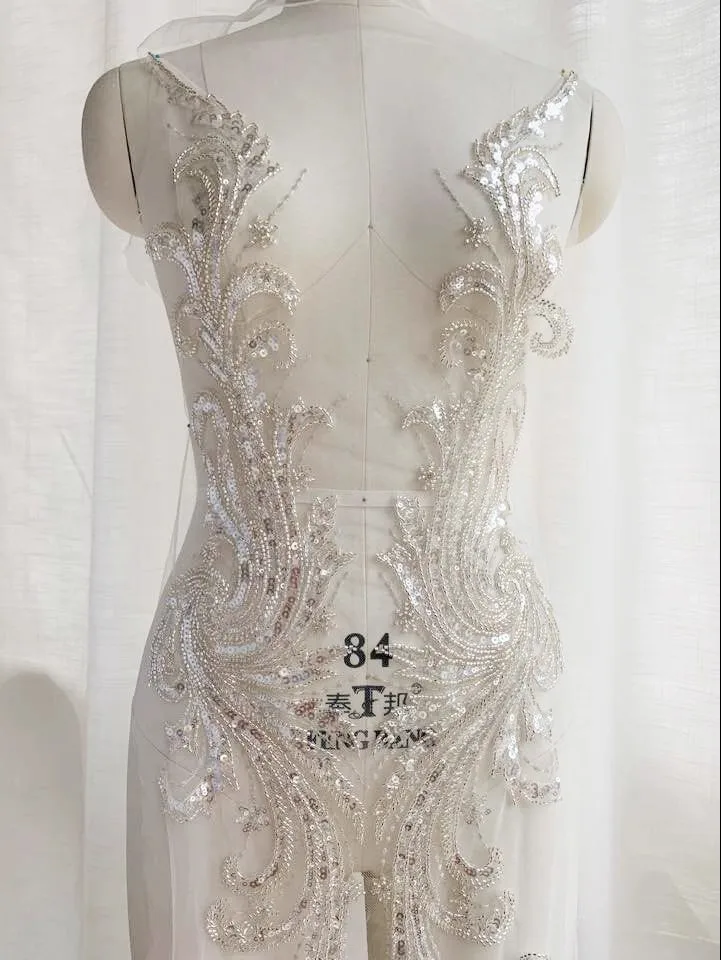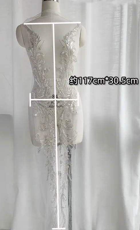 إكسسوارات الدانتيل والتطريز بالخرز الأسود والفضي الفاخر عالي الجودة وخياطة فستان الزفاف والديكور