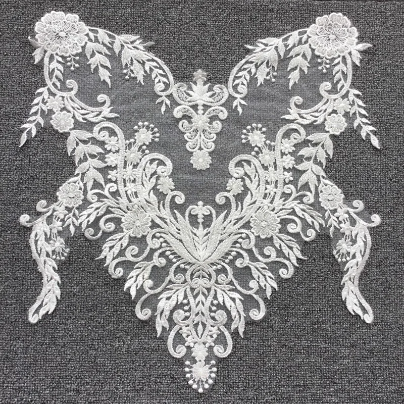 ملصق زهور على شكل طوق من الدانتيل الفاخر وظهر مزين بخرز الأظافر لفساتين الزفاف الراقية المصنوعة من مادة الحرير الصناعي عالية الجودة