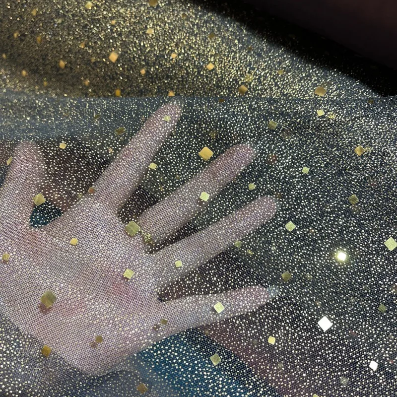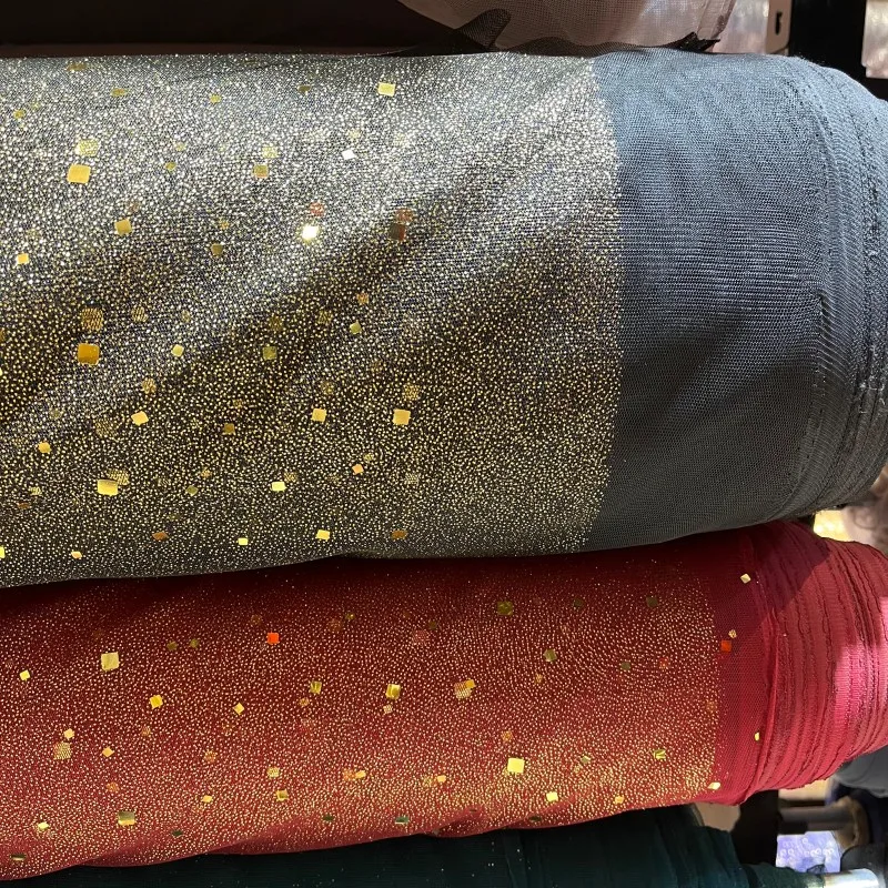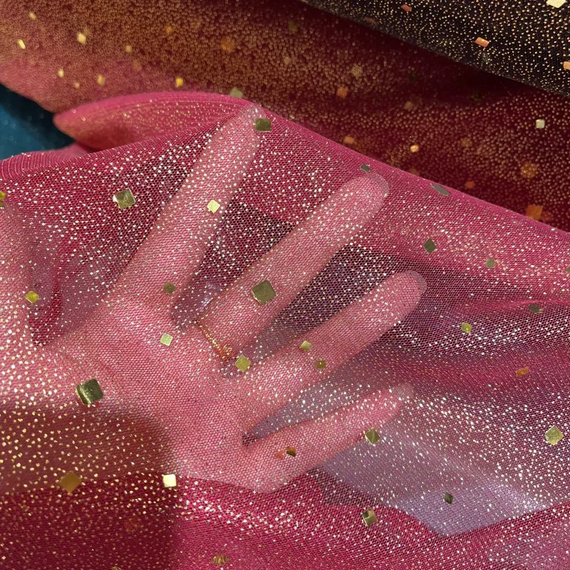 منتج جديد نبيذ أحمر الحجم الشكل الزاوي الذهب بريق ختم ساخن نسيج شبكي ملابس الأداء فساتين الزفاف فساتين رسمية