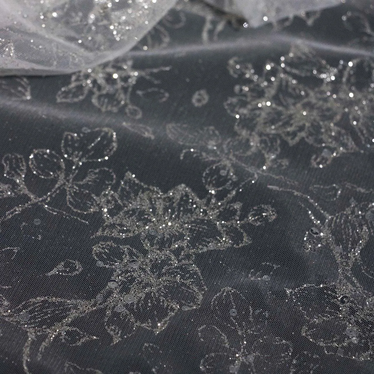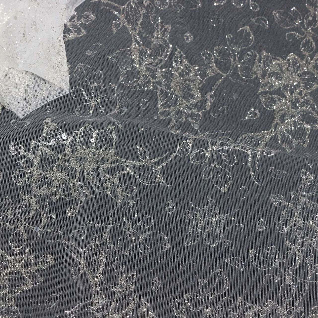 رش مسحوق الفضة مسحوق بريق ناعم مسحوق مشرق زهور صغيرة الدانتيل شبكة فضية DIY فستان فستان الزفاف مادة الفستان