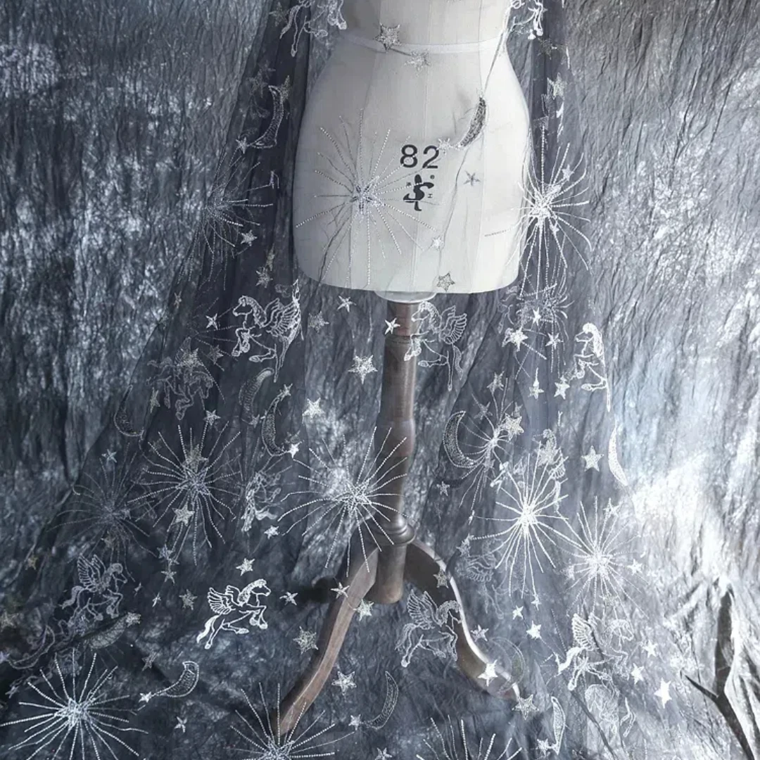 فستان زفاف من قماش الدانتيل المطرز بشبكة شفافة من Tianma، فستان زينة مصنوع يدويًا، مادة قماش سوداء