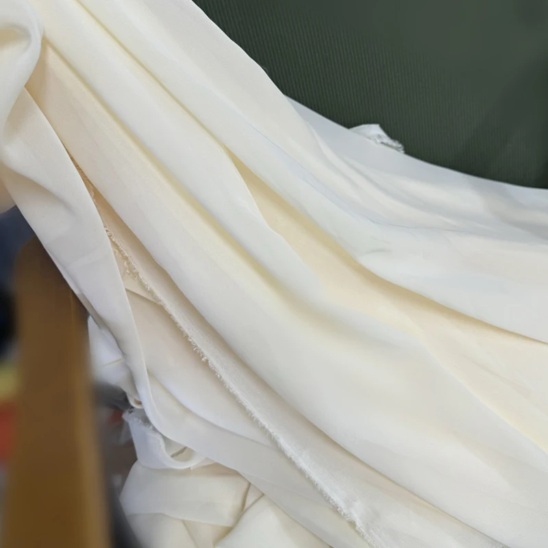 Textura suave y fluida: esta tela de georgette de gasa ofrece una caída ligera, aireada y elegante, perfecta para crear prendas fluidas y decoraciones para el hogar.