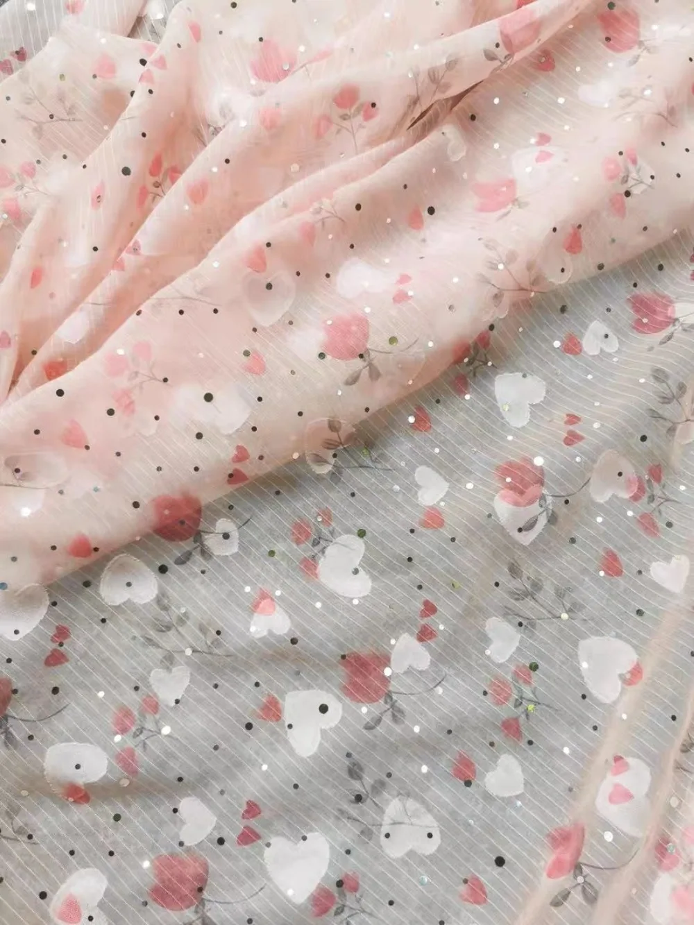 Tela de gasa bordada en oro rosa con encaje floral pequeño estilo Hanfu para vestidos de media longitud, blusas y disfraces, costura DIY
