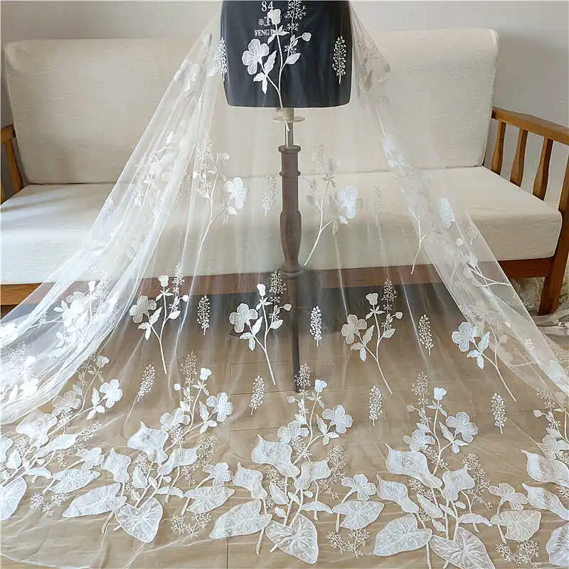 Vestido de novia de alta gama con encaje de cala y hueso de coche, ropa de regalo, cortina de puerta, tela de encaje, bordado, accesorios de bricolaje hechos a mano.