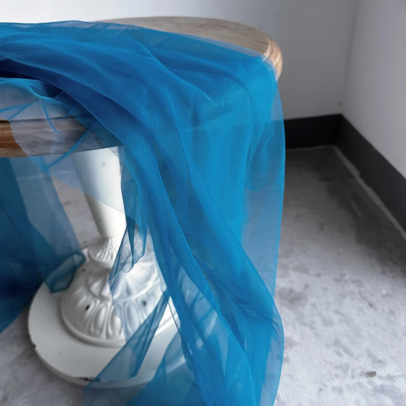 Tela de malla de gasa ligera con efecto niebla, hilo de tul azul suave, velo de fondo DIY, vestido de novia, tul de hadas, material de decoración nupcial