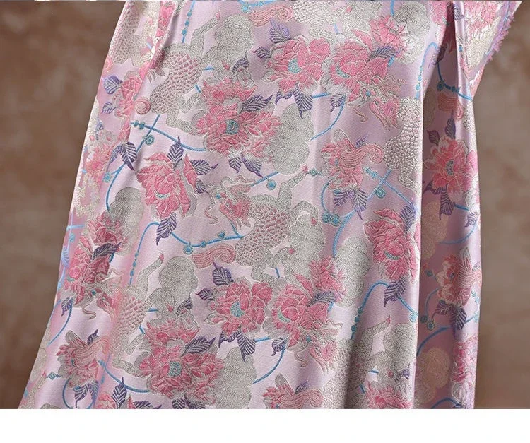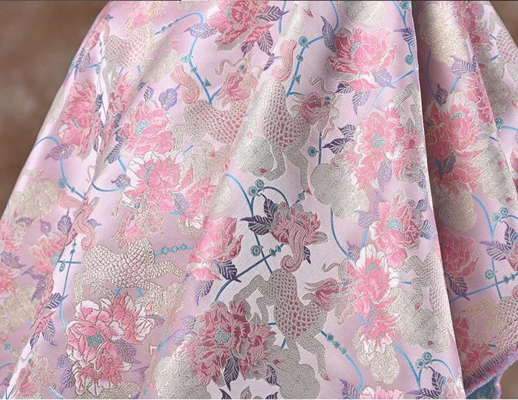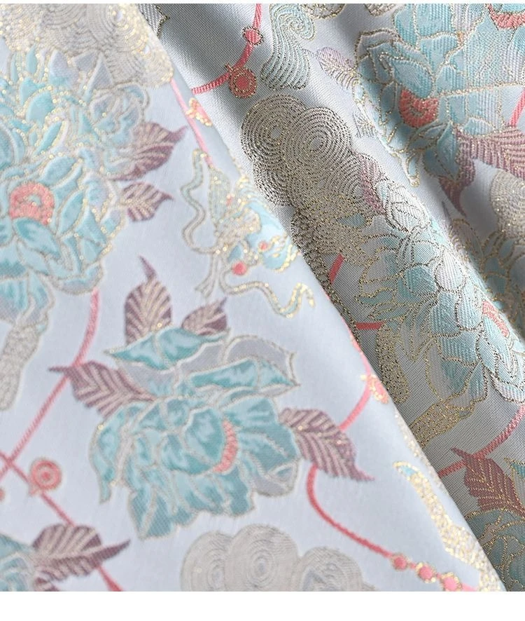 Tejido jacquard de satén ligero de doble cara con flores para prendas creativas de estilo retro y prendas de lujo.