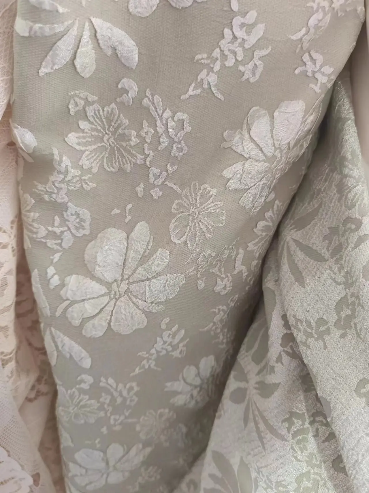 Fabricada con seda dorada de primera calidad, esta tela jacquard ofrece una sensación lujosa y un brillo elegante.