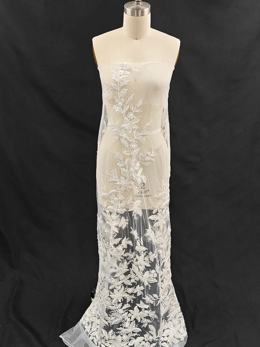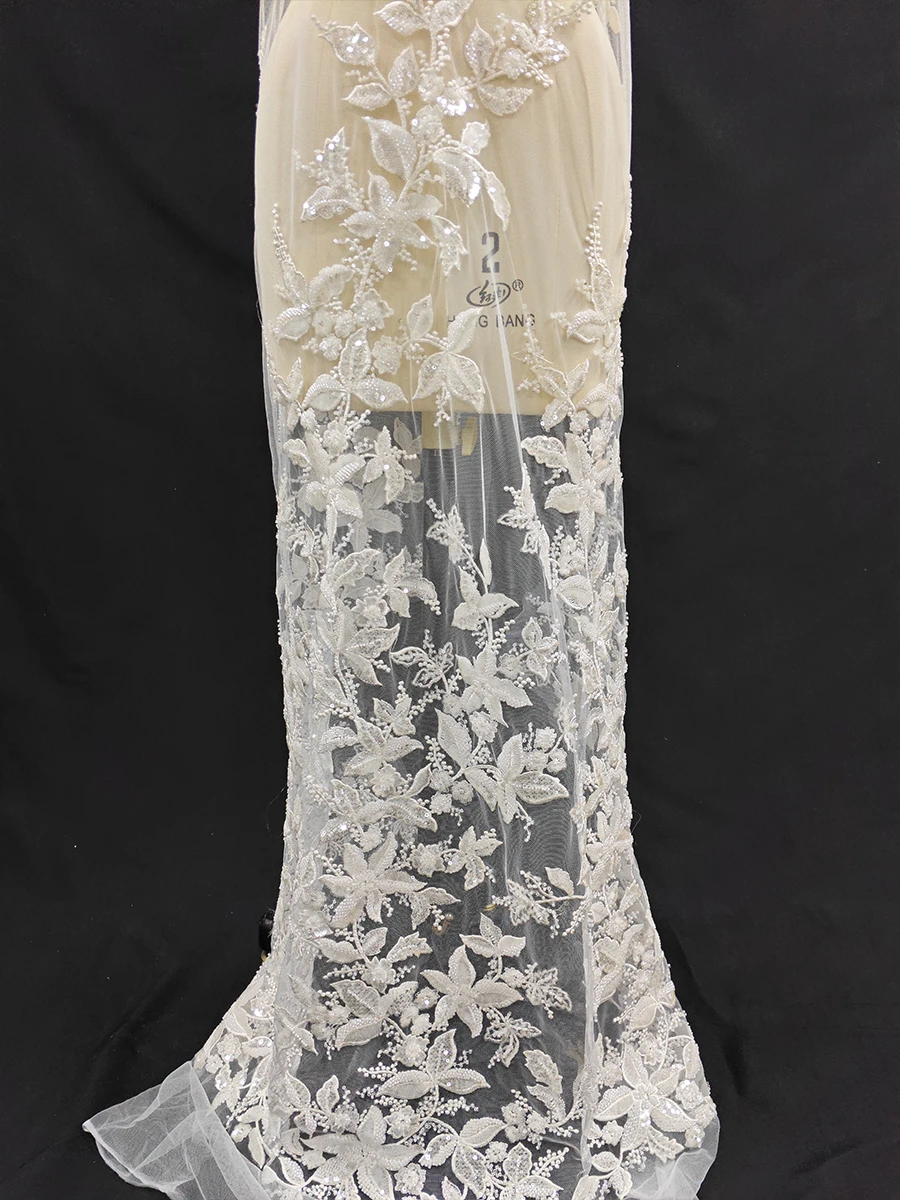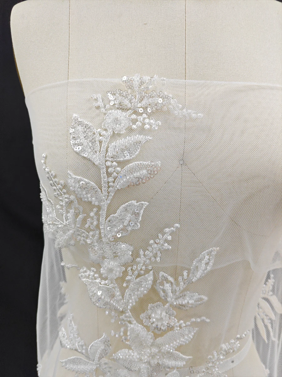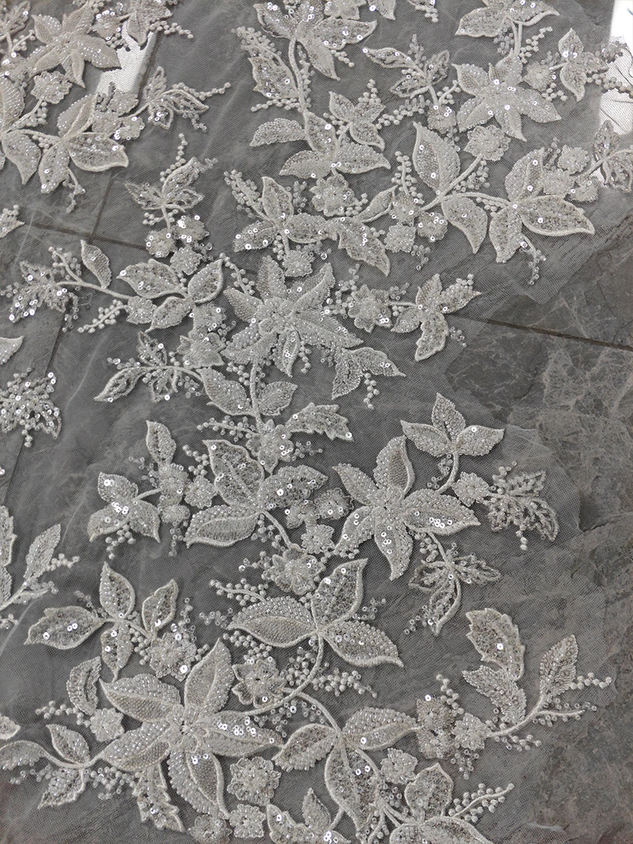 Tejido de lujo adornado con lentejuelas para elegantes vestidos de novia y de noche.