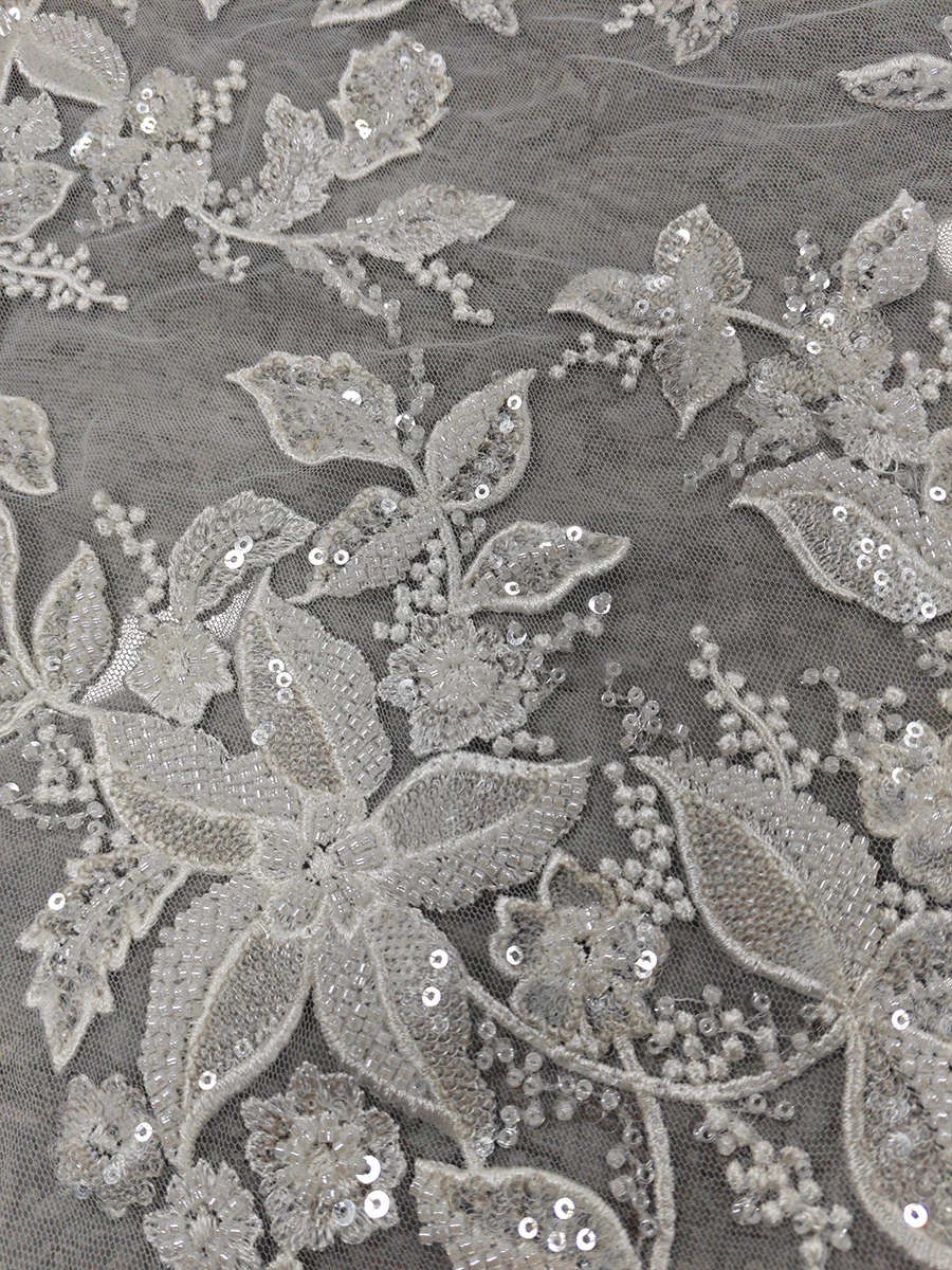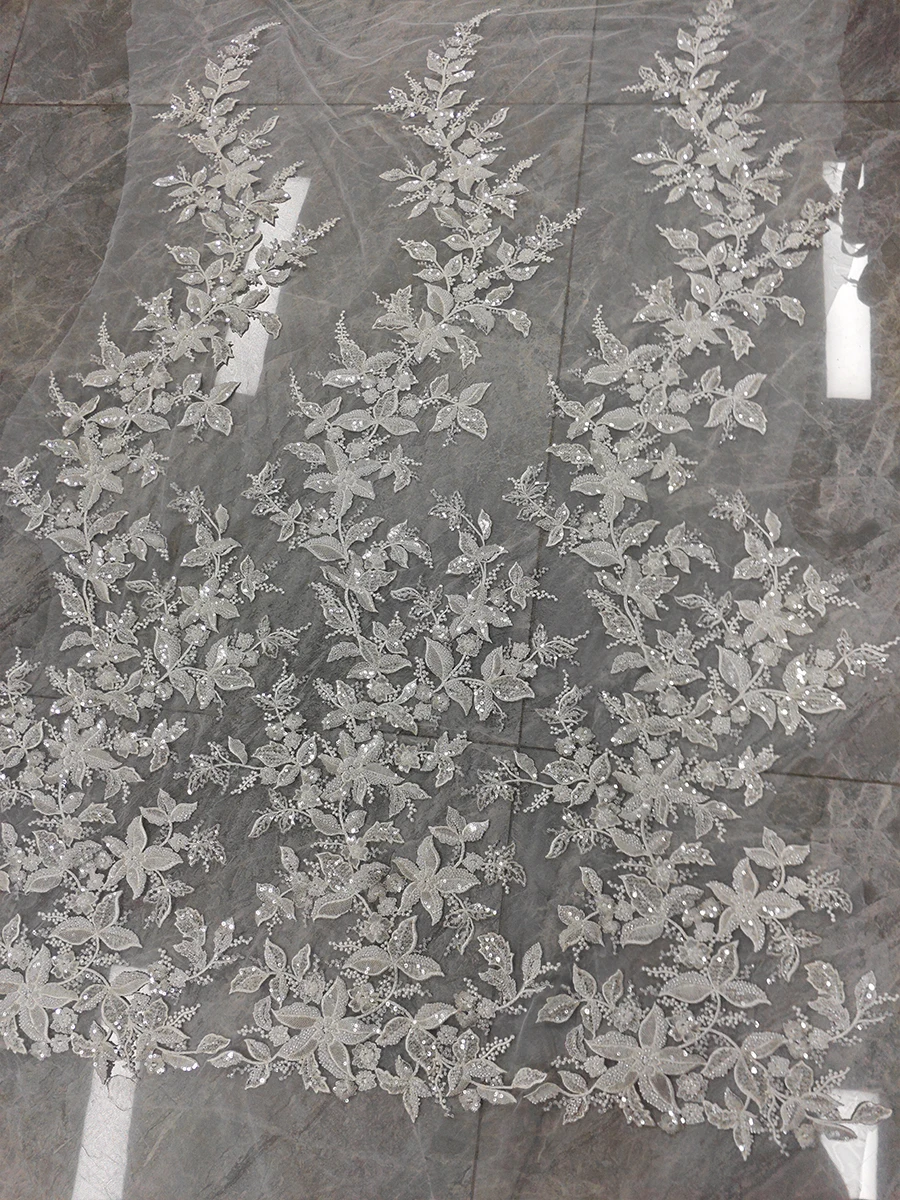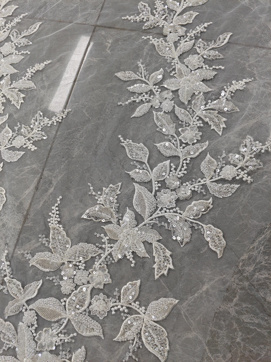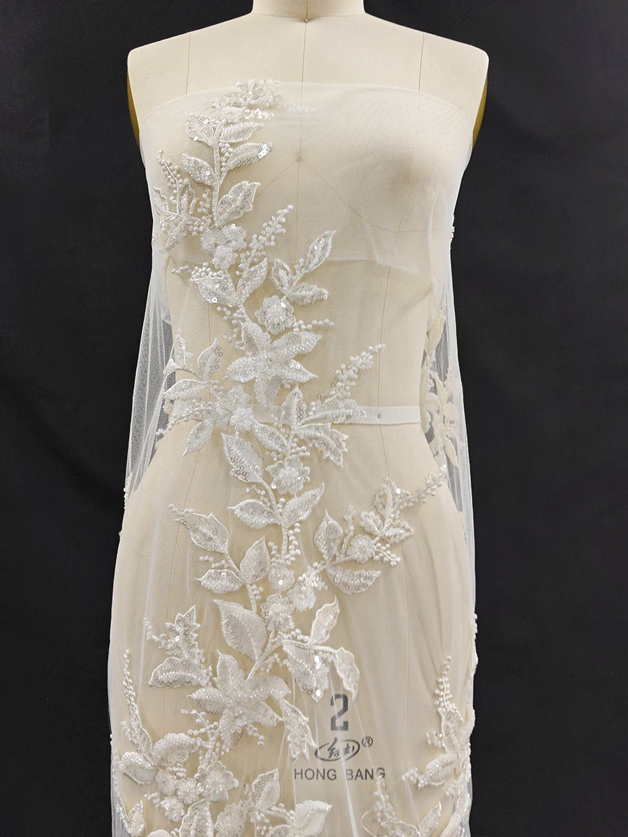 Tejido de lujo adornado con lentejuelas para elegantes vestidos de novia y de noche.