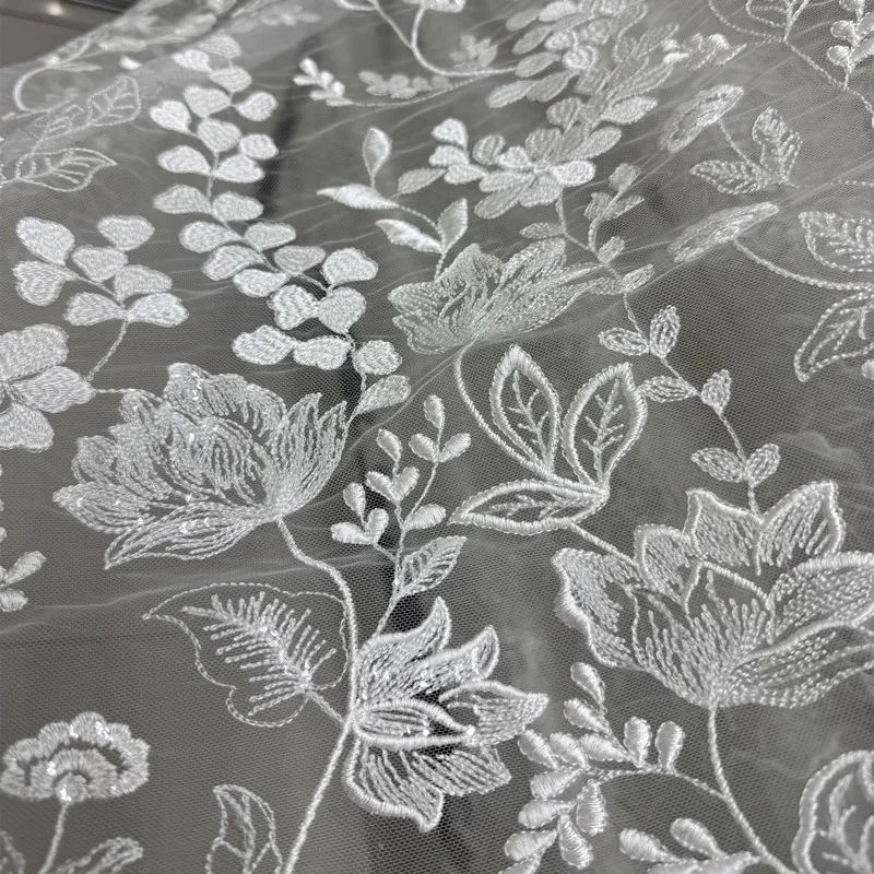 Vestido de novia de tela de encaje bordado con hojas florales elegantes de primera calidad, vestido de novia, traje de noche, trajes formales, artesanías nupciales transparentes