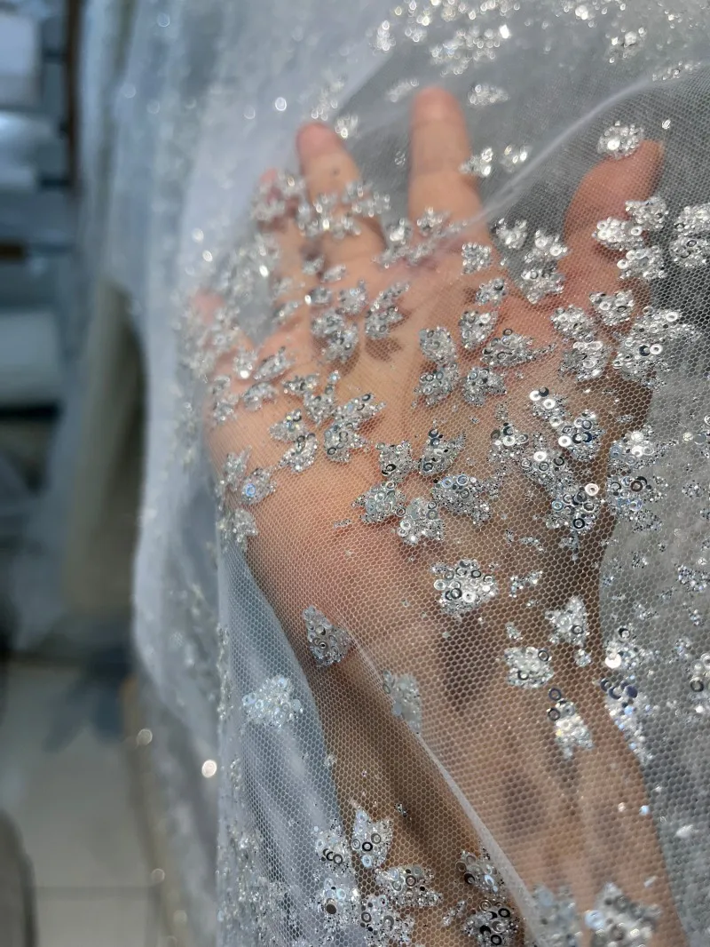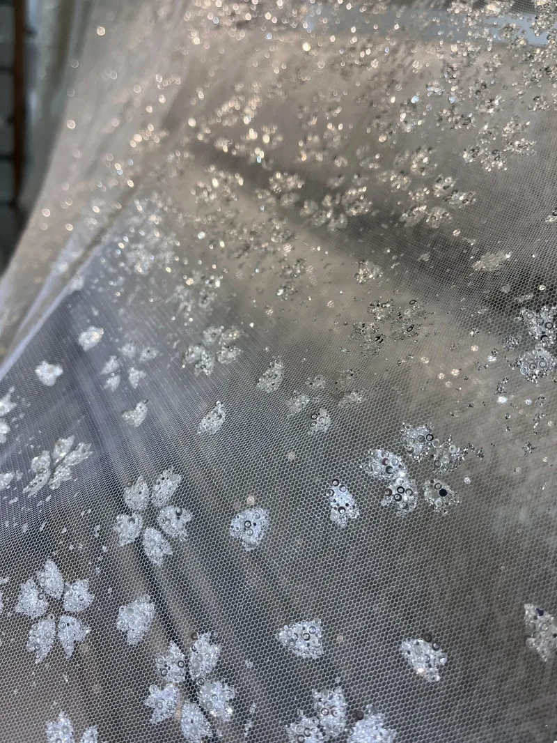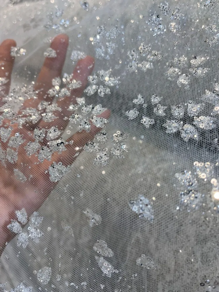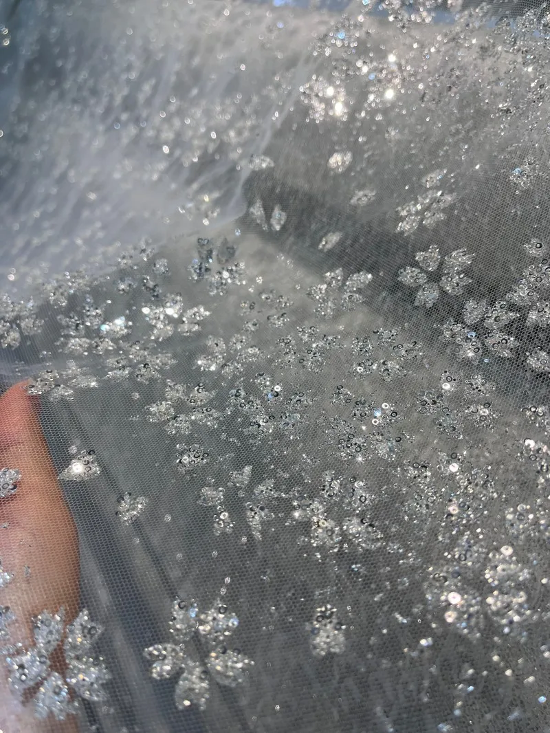 Lentejuelas de cristal de copo de nieve, malla fina transparente brillante, tela para vestidos de bricolaje, tela para vestidos de novia, tela