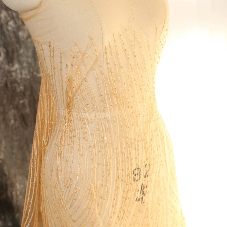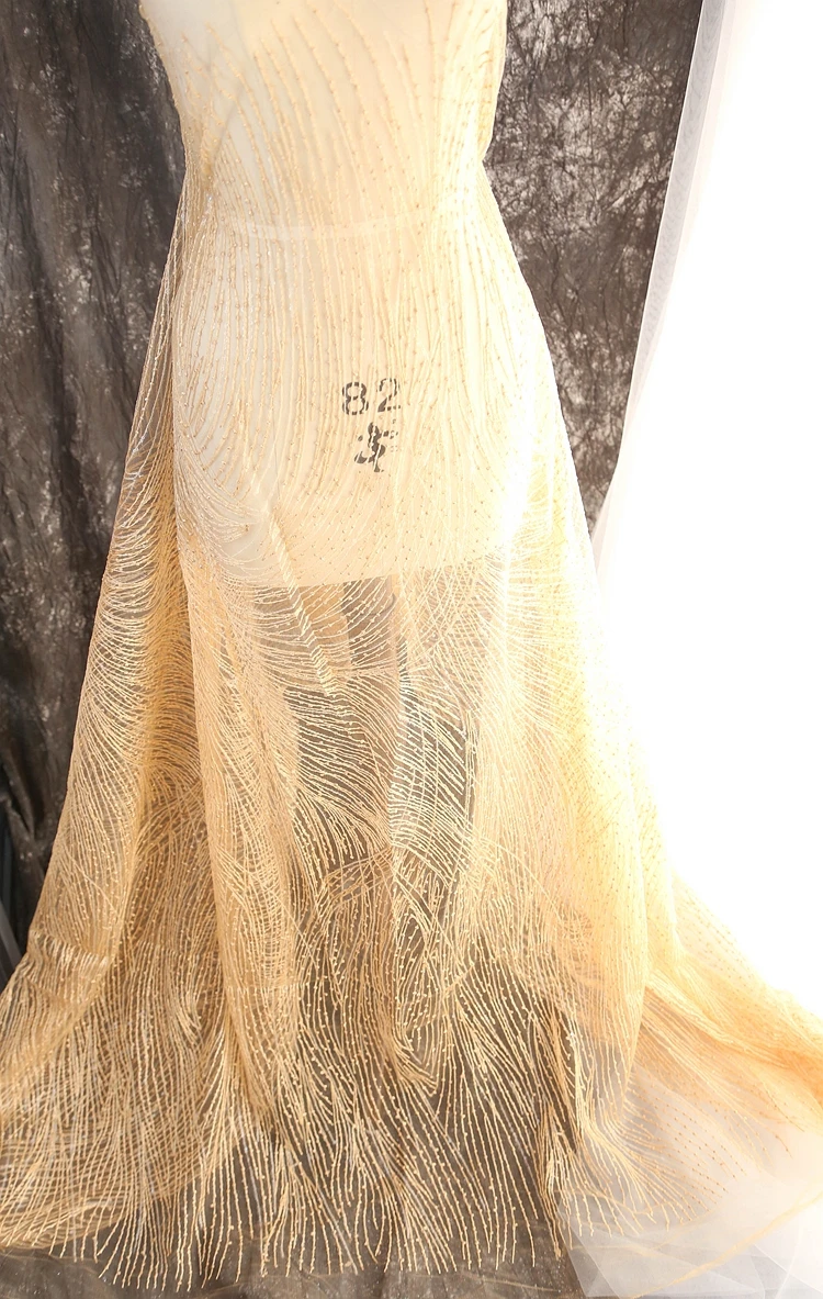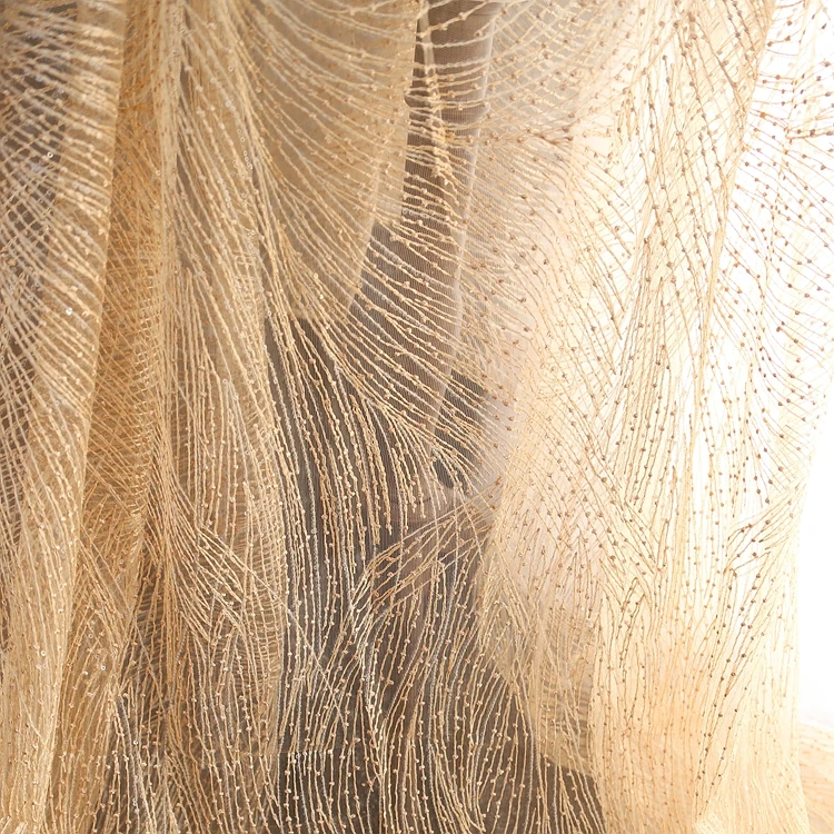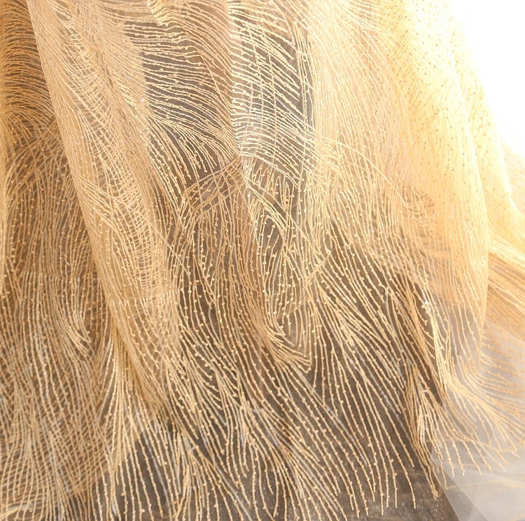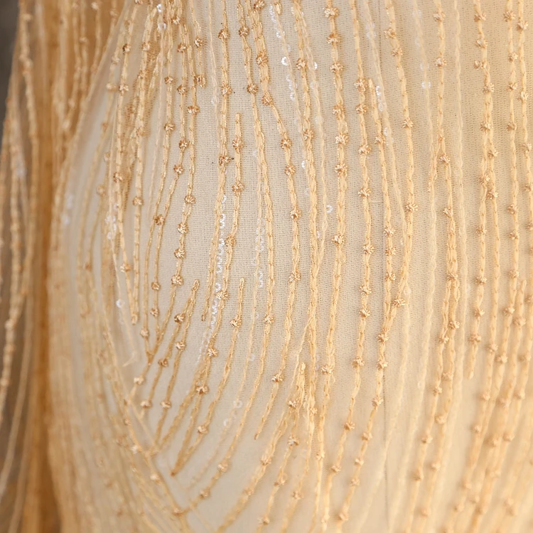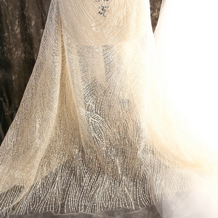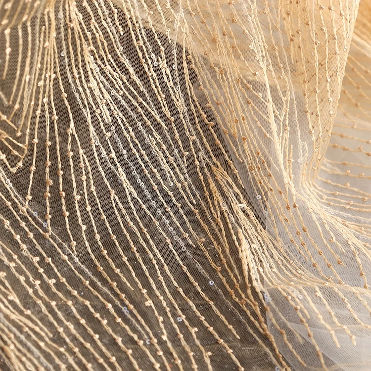 Tela de sarga con bordado aleatorio de encaje y lentejuelas para vestido de novia, hecha a mano, tela decorativa DIY, diseño de graduación, decoración