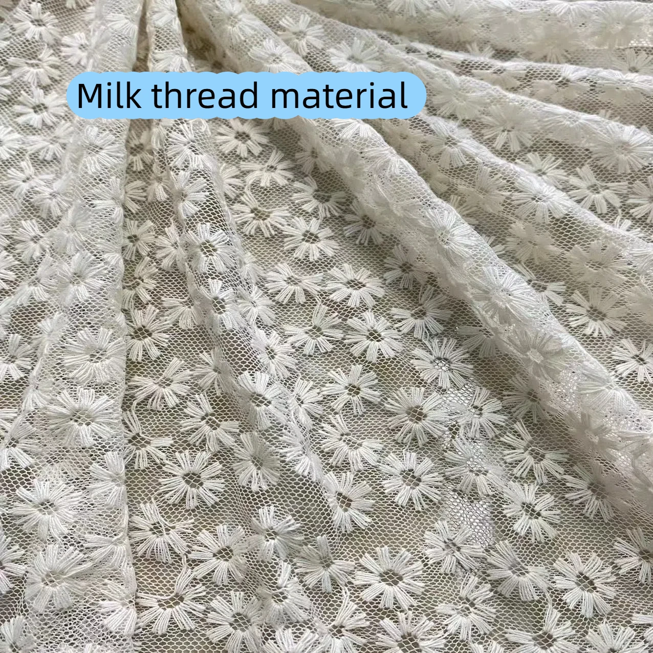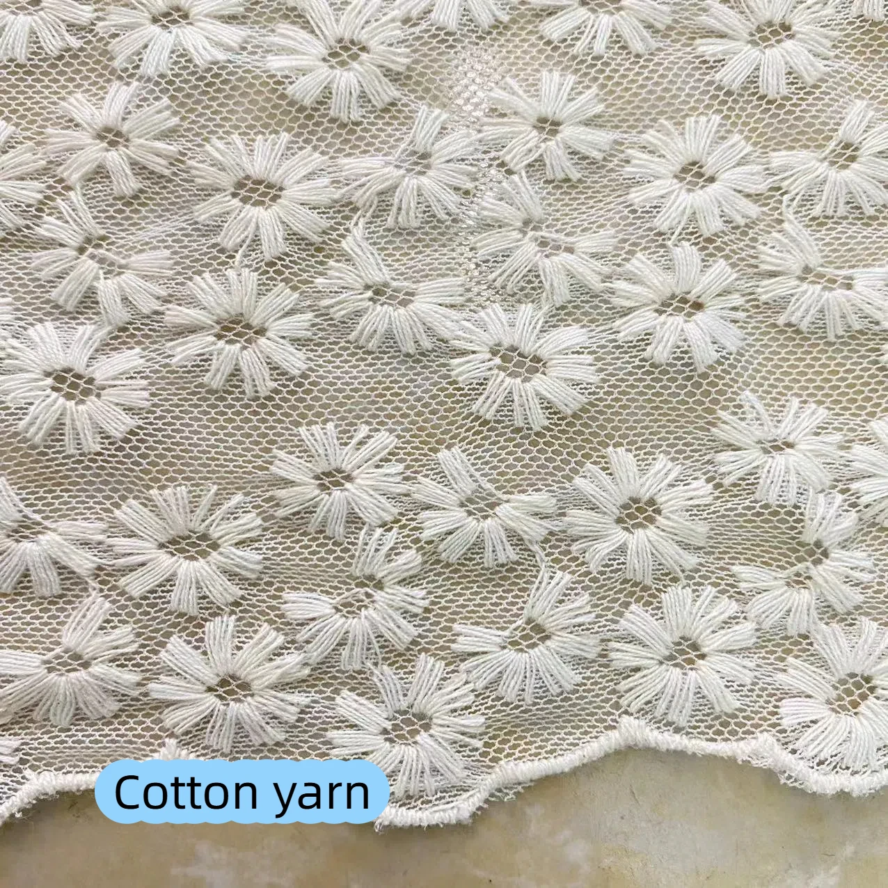 Tejido de malla de hilo de algodón soluble en agua, bordado con encaje y pequeños crisantemos florales, para prendas de vestir, parte superior e inferior.