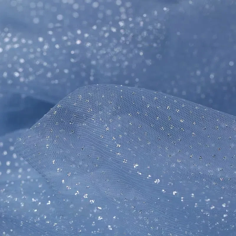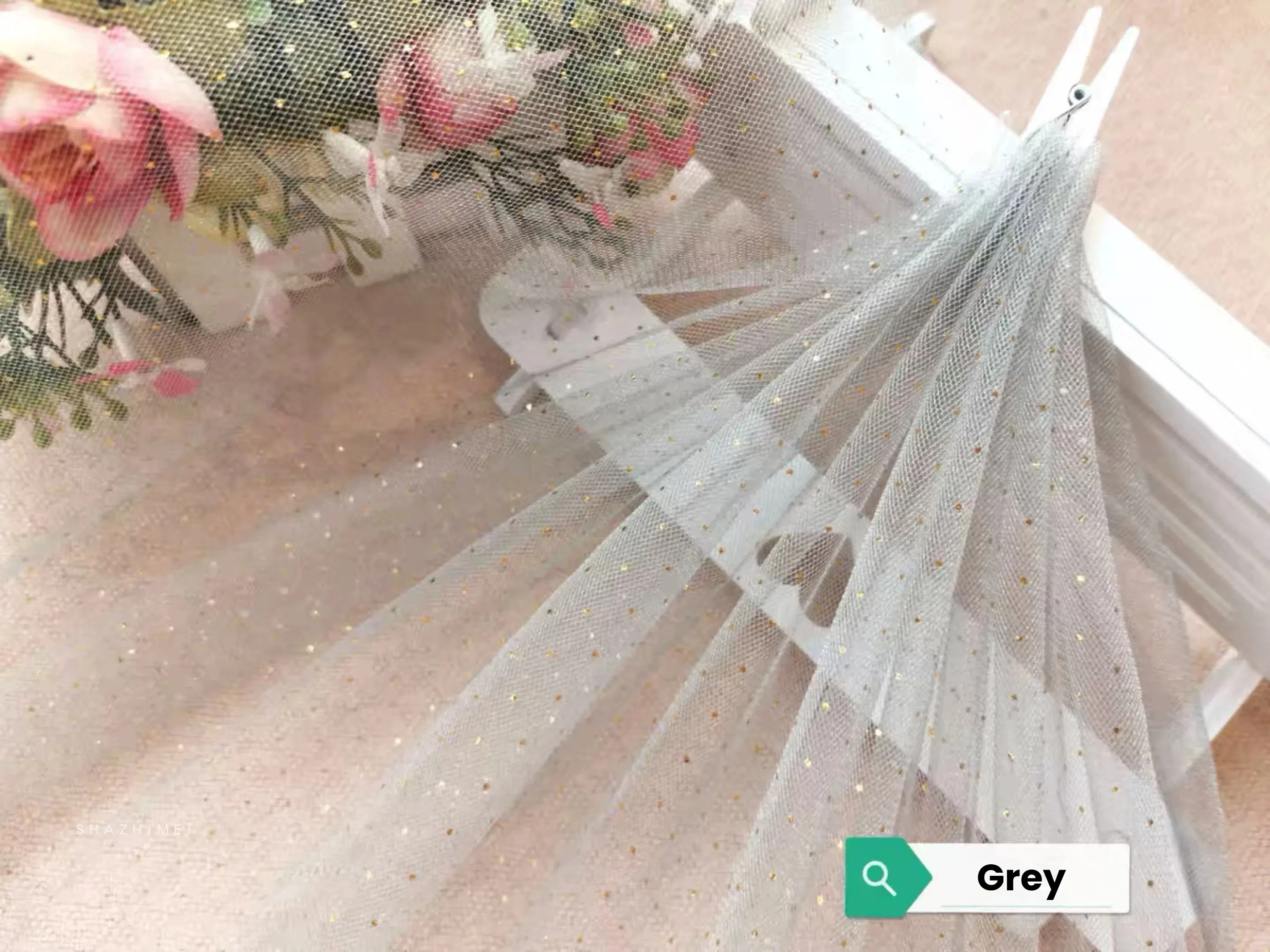 High-quality Blue Black Purple Champagne Colored Headdress, Hot Stamping Gold Spray Shiny Film Wedding Dress Soft Tulle Fabric