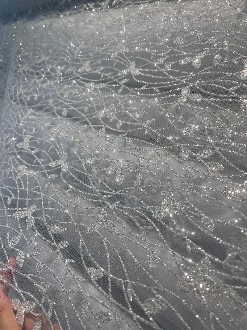 New Shiny Leaf Spray Silver Hot Stamping Transparent Mesh Wedding Dress Fabric Fabric Clothing Accessories